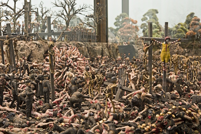 17) What will the future look like? Chaos and extinction with the Benny Hill theme tune playing in the background.